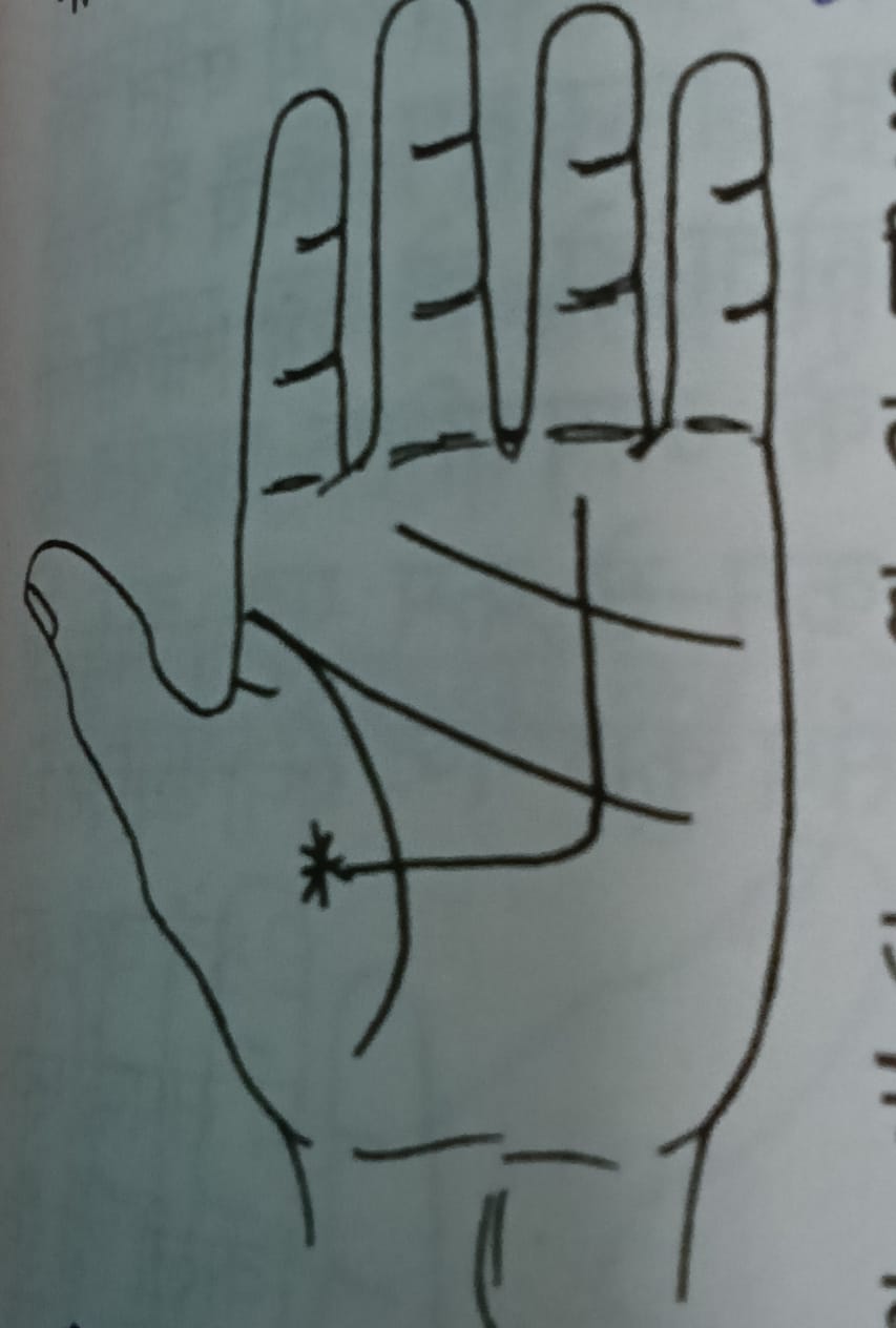 यदि किसी जातक के शुक्र पर्वत पर स्थित नक्षत्र से कोई प्रभावी रेखा निकले तथा त्रिभुज के भीतर से आरंभ होकर सूर्य रेखा के साथ मिल जाए तो इस प्रकार के जातक को उत्तराधिकार में काफी संपत्ति प्राप्त हो जाती हैl